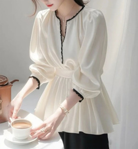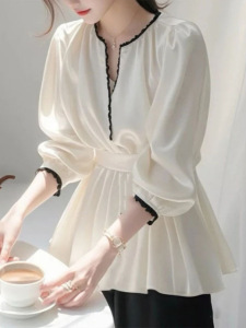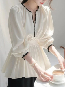 2025新款秋季独特好看气质上衣高级感小香风百搭白色缎面衬衫女
