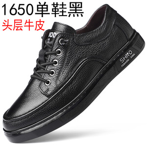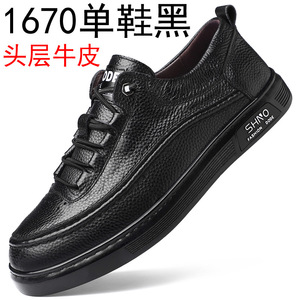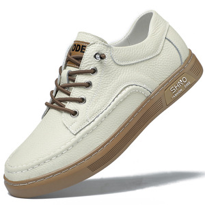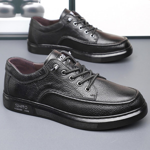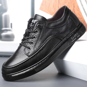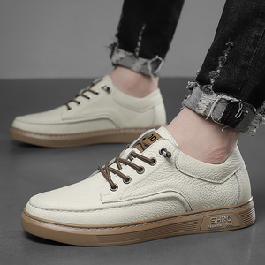 头层牛皮休闲男鞋子春季新款系带小白鞋柔软板鞋厚底简约真皮鞋男