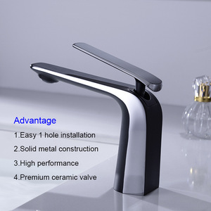 黑+银 混色冷热混水单孔洗脸盆水龙头全铜卫生间洗手盆龙头防溅水