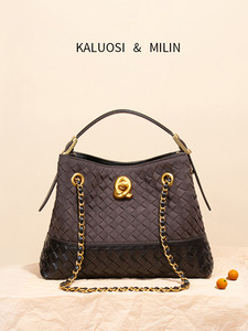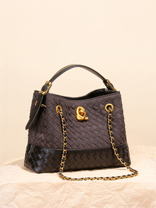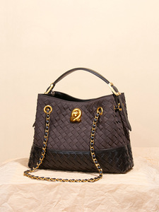 复古高级感编织包撞色麂皮绒托特包包女2025新款水桶包斜挎链条包