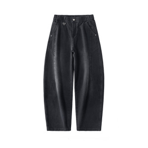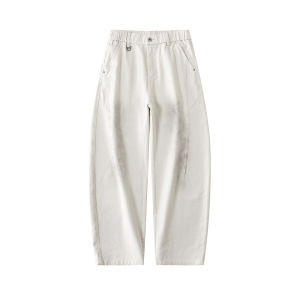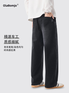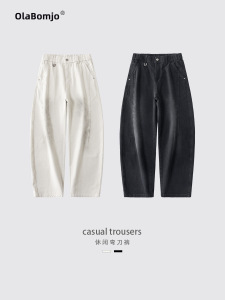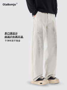 休闲弯刀裤男秋冬新款美式宽松阔腿高街潮牌简约拼接痞帅直筒裤