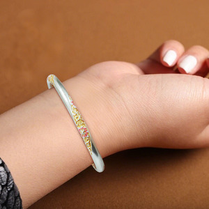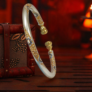 厚银保色描金珐琅葫芦繁花手镯女轻奢圆肚实心开口精致饰品礼物潮