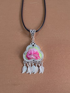 手工刺绣吊坠苏绣小苗银饰品店项链手工