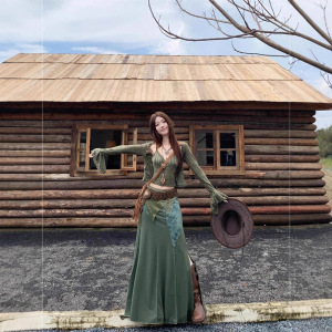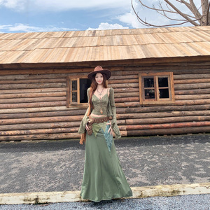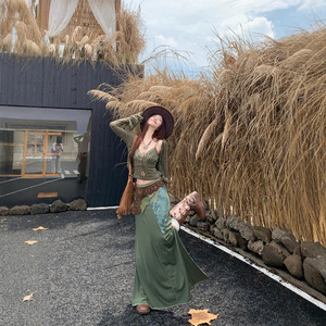 森系复古吊带喇叭袖开衫拼接辣妹半身裙女2025秋季新款时尚套装潮