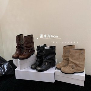 辣妹废土风短筒夏季靴子女2025秋季新款褶皱堆堆靴宽筒短靴裤管靴