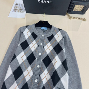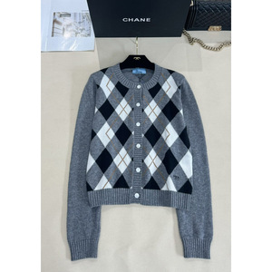 高版本P家25秋冬新款菱格纹针织开衫经典长袖设计适配多季穿搭