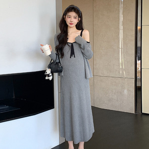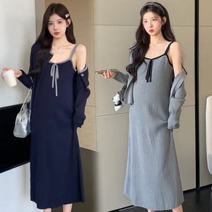 孕妇秋装连衣裙2025新款孕妈法式穿搭针织吊带裙两件套早秋穿搭