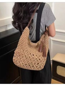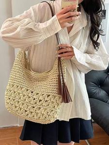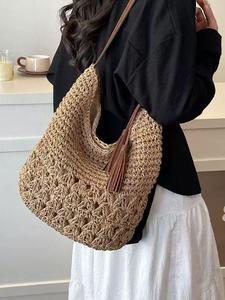 2025夏季新款单肩包复古度假草编包休闲洋气通勤镂空流苏包包女厂
