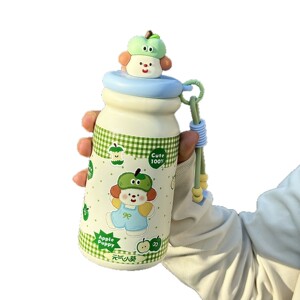 绿苹果狗头塔型保温杯【500ML】-上下绿格子苹果狗+提绳