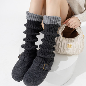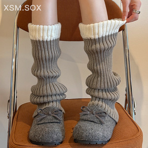 靴尚棉袜套女秋冬加厚小腿袜拼色保暖横机重工款针织毛线长筒腿套