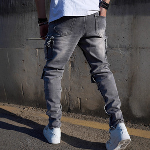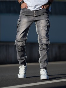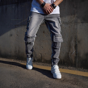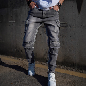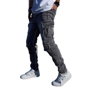 重磅复古工装牛仔裤多口袋宽松直筒裤潮牌美式蓝色牛仔休闲裤男