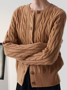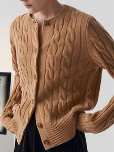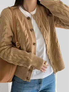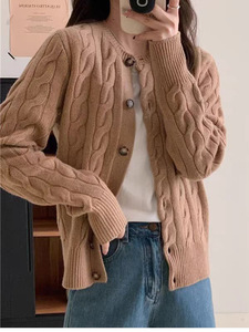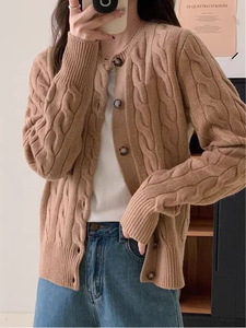 秋季新款女装麻花针织开衫女圆领单排扣长袖短款上衣通勤百搭外套