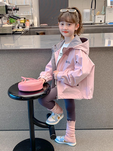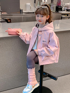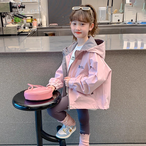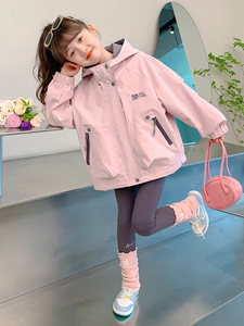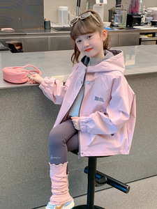 女童冲锋衣外套春秋款2025新款洋气儿童秋装小女孩运动连帽上衣潮