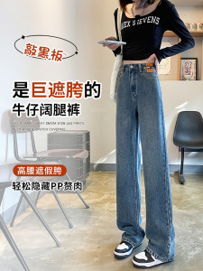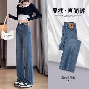 直筒牛仔裤女2025新款春秋蓝色显瘦裤子高腰小个子加绒窄版阔腿裤