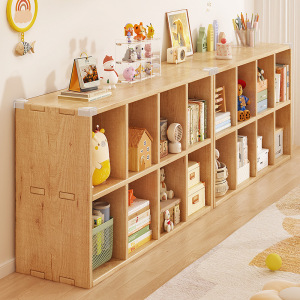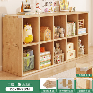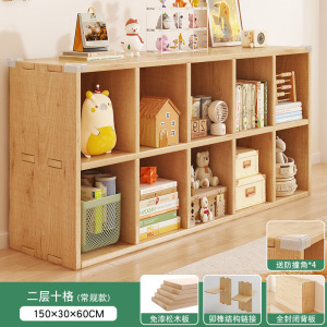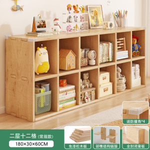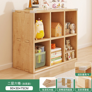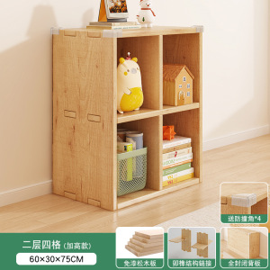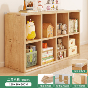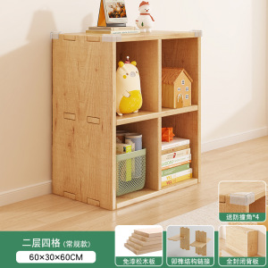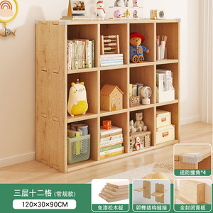 实木书架置物架落地靠墙组合格子柜客厅幼儿园储物收纳矮松木书柜