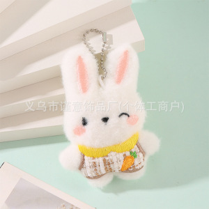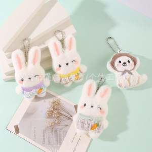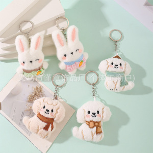 网红款卡通ins风小白兔钥匙扣挂饰可爱毛绒围巾小狗公仔挂饰批发