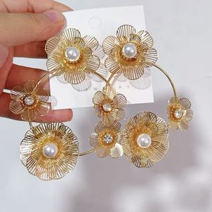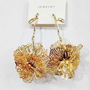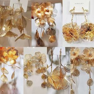 夸张金色镂空花朵流苏耳环 长款金属花卉耳坠电脑片耳饰跨境厂家