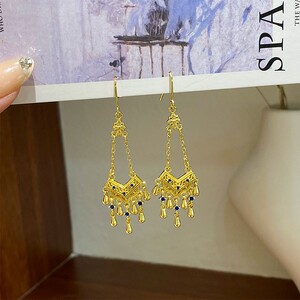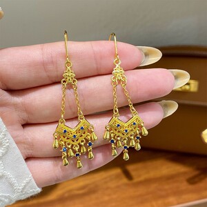 复古时尚精致镂空流苏微镶锆石耳环轻奢高级感夸张耳饰设计感小众