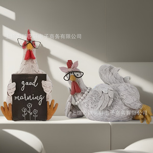 跨境创意树脂工艺品早安公鸡母鸡解压办公室摆件可爱户外装饰礼品