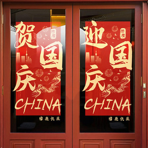 庆迎国庆节装饰节日场景氛围布置窗贴商场橱窗红色静电玻璃门贴纸