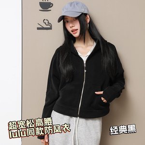 2025秋冬款运动上衣美式拉链瑜伽宽松显瘦连帽卫衣开衫加绒外套女