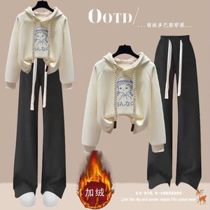初中生春秋卫衣套装2025新款女孩洋气休闲连帽秋冬加绒两件套批发