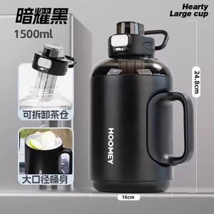 【316不锈钢长效保冰保温+赠茶仓+吸管+杯刷】暗耀黑1500ml
