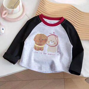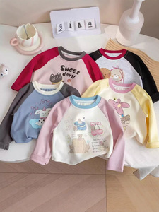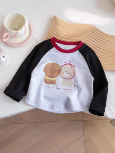 宝宝长袖T恤女童插肩袖2025秋款新款女童上衣撞色卡通T恤打底