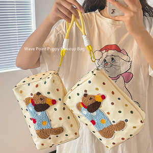 2025新款可爱波点小狗大容量便携外出旅行手提笔袋高颜值收纳袋