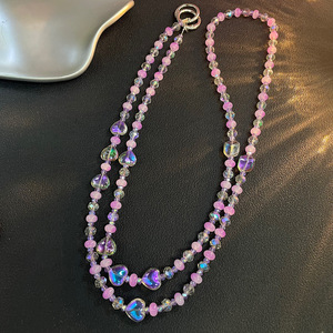 紫色水晶珠子爱心斜跨挂绳