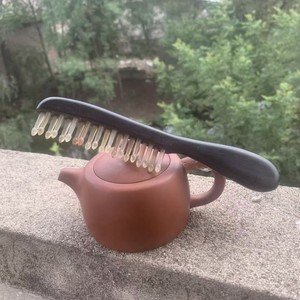 爆款紫光檀插羊角齿加厚鼓柄梳紫光檀加厚鼓柄插羊角齿按摩梳