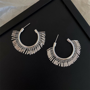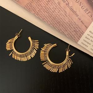 欧美潮流个性夸张金属C性圆圈流苏耳环设计感轻奢网红爆款耳饰品