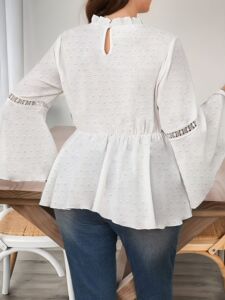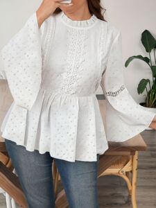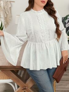 欧美优雅女士纯色蕾丝花边荷叶边袖加大码上衣 休闲时尚长袖衬衫