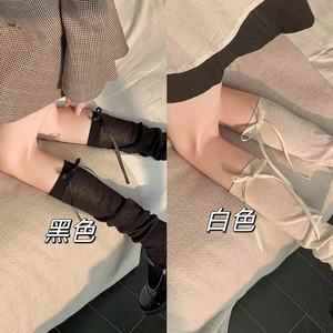 miu里miu气~芭蕾风jk蝴蝶结飘带过膝女拼接堆堆简约小腿袜长筒袜