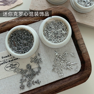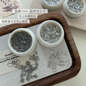 克罗心美甲饰品精致甜酷迷你十字架黑色小配件套盒指甲装饰品批发