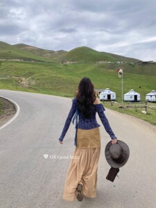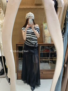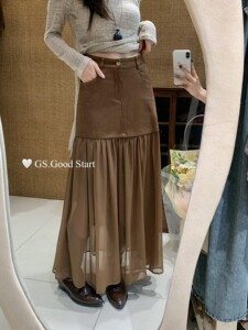 GS.GOOD START-秋季时髦复古麂皮拼接网纱百搭氛围感半身裙G6165V