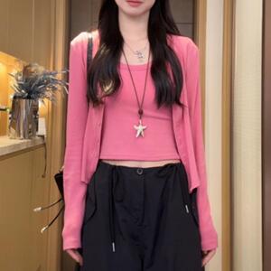 早秋高密棉防晒慵懒风开衫长袖短外套2025早秋新款其他纯色款