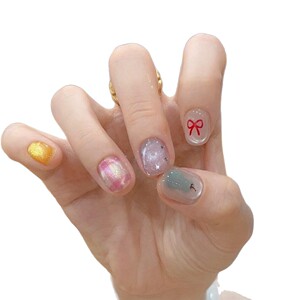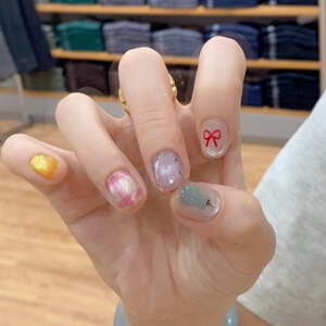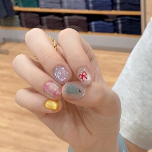 手绘蝴蝶结ins风猫眼甲片短款显白纯手工穿戴甲手作美甲指甲贴片