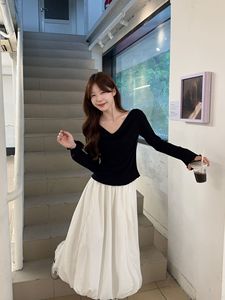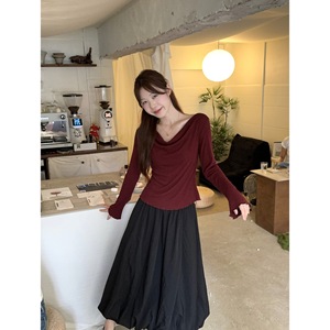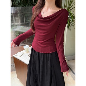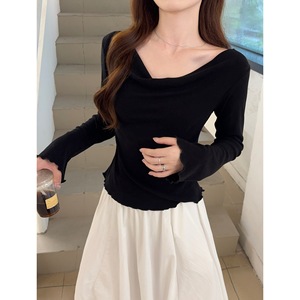 实拍2025早秋胖mm大码设计感荡领长袖T恤正肩打底衫内搭上衣80267