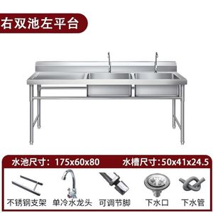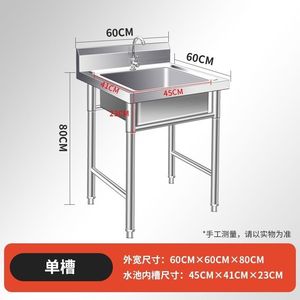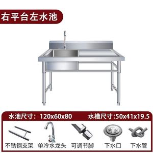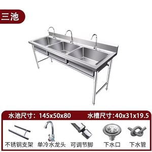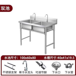 加厚304不锈钢水槽单双池洗手池带支架商用厨房食堂洗碗洗菜池