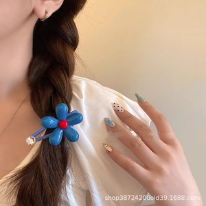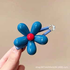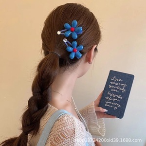 韩国东大门新款蓝色花朵发夹女侧边刘海鸭嘴夹子头饰甜美少女发饰