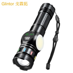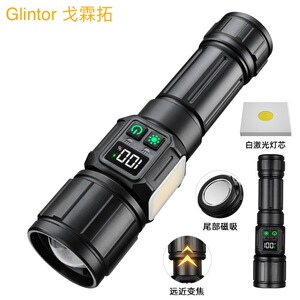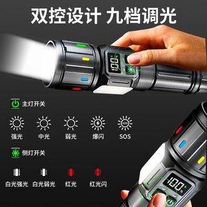 跨境新款户外手电筒远射变焦白激光强光多功能COB侧灯LED充电红光