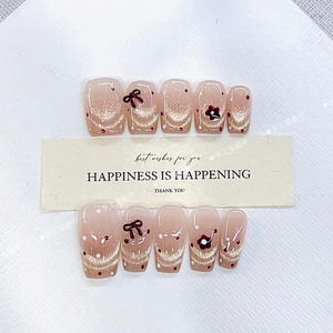 黛月达 纯手工穿戴甲暖色调立体法式猫眼款纯欲高端气质美甲贴片