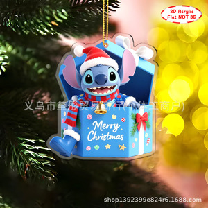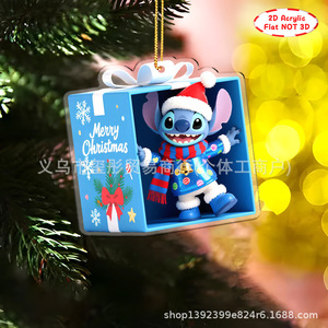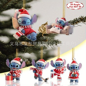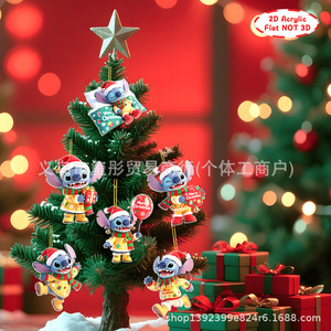 跨境temu希音新款史迪仔圣诞装饰汽车装饰挂件平面亚克力2D挂牌