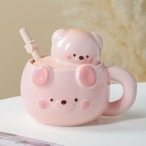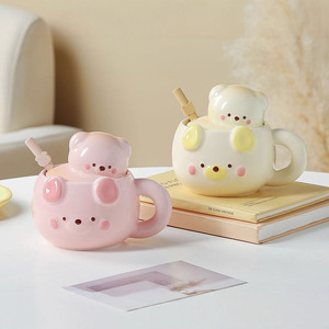 熊崽咖啡杯可爱卡通陶瓷马克杯带盖创意小众生日礼物高颜值伴手礼