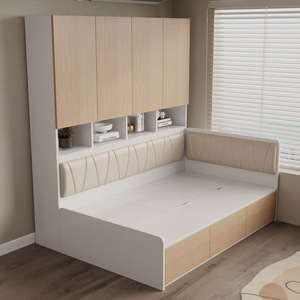 小户型气压储物床儿童榻榻米衣柜一体省空间卧室衣柜组合床可