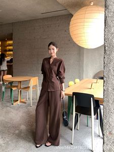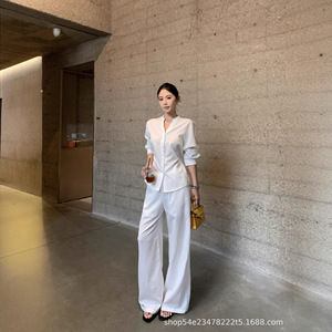 极简老钱风时尚套装时尚时髦衬衫长袖显瘦高腰系带休闲裤气质优雅