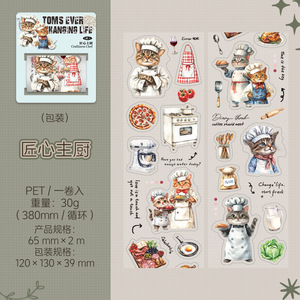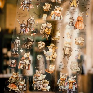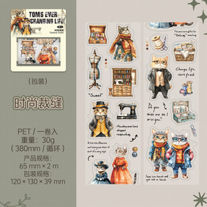 番茄酱少女PET胶带 汤姆的百变生活系 猫主题造景模切手帐diy贴纸