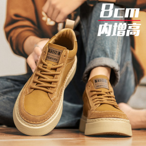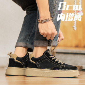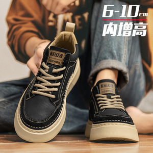 男鞋2025新款春夏季英伦百搭隐形内增高10cm厚底运动休闲工装板鞋