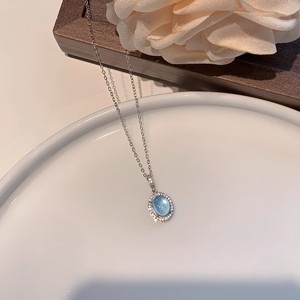 韩版小众设计s925纯银海蓝宝项链女复古轻奢高级感简约式颈链批发